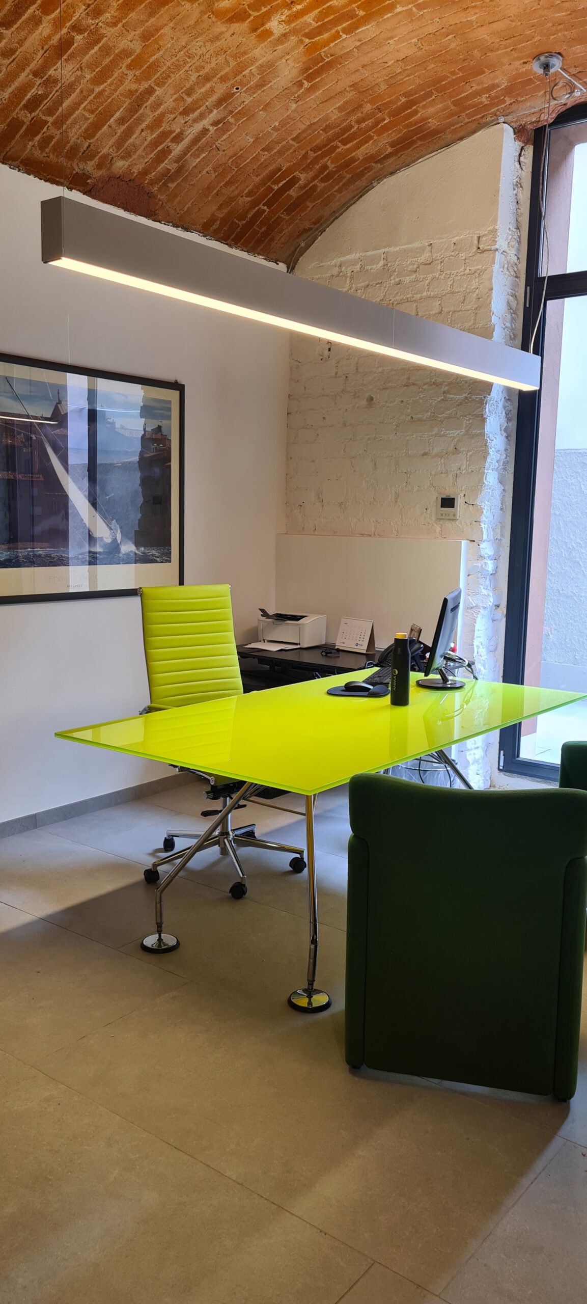 L’illuminazione degli uffici è stata progettata nel dettaglio attraverso uno studio illuminotecnico in collaborazione con FLOS, per garantire comfort visivo, design e corretta illuminazione in ogni ambiente di lavoro. I sensori di presenza e temperatura permettono una regolazione automatica di luci e climatizzazione in base all’effettivo utilizzo degli spazi, contribuendo a una sensibile riduzione dei consumi energetici.